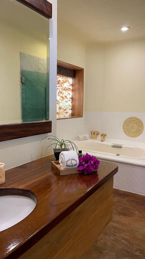 The suites are equipped with television (external provider), mini bar. We also offer options in your room such as Jacuzzi or whirlpool tub, balcony or terrace if you wish.